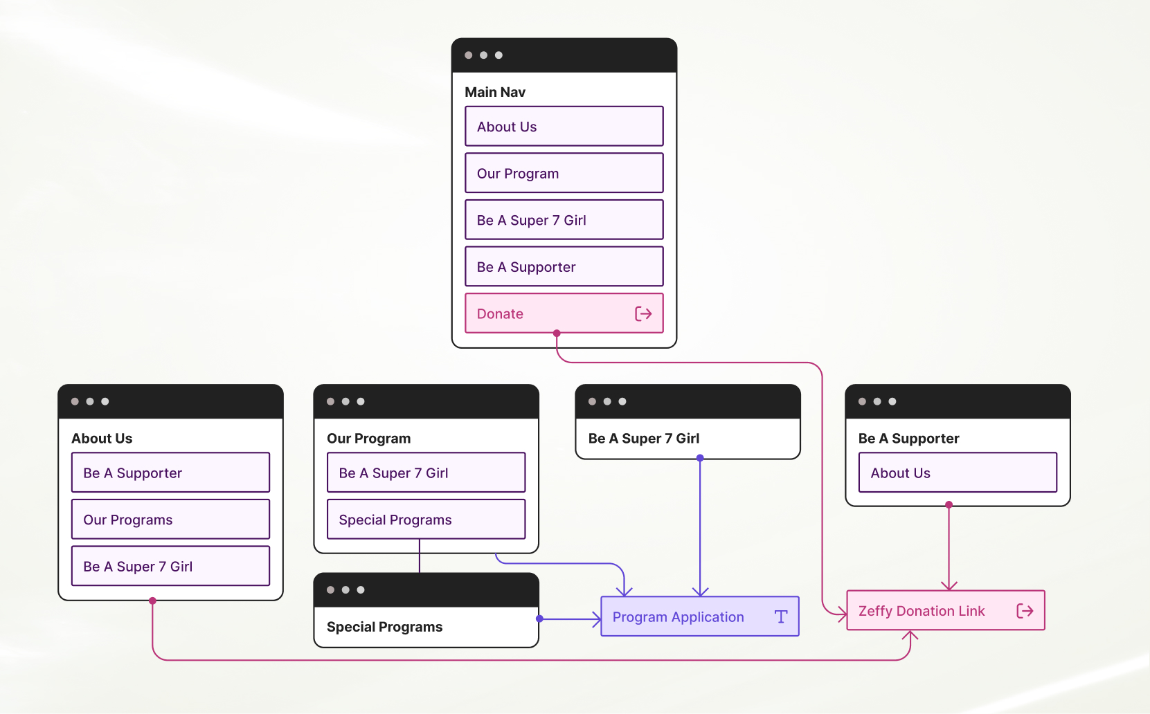 Simplify user flow + add multiple entry points for applications and/or donations
